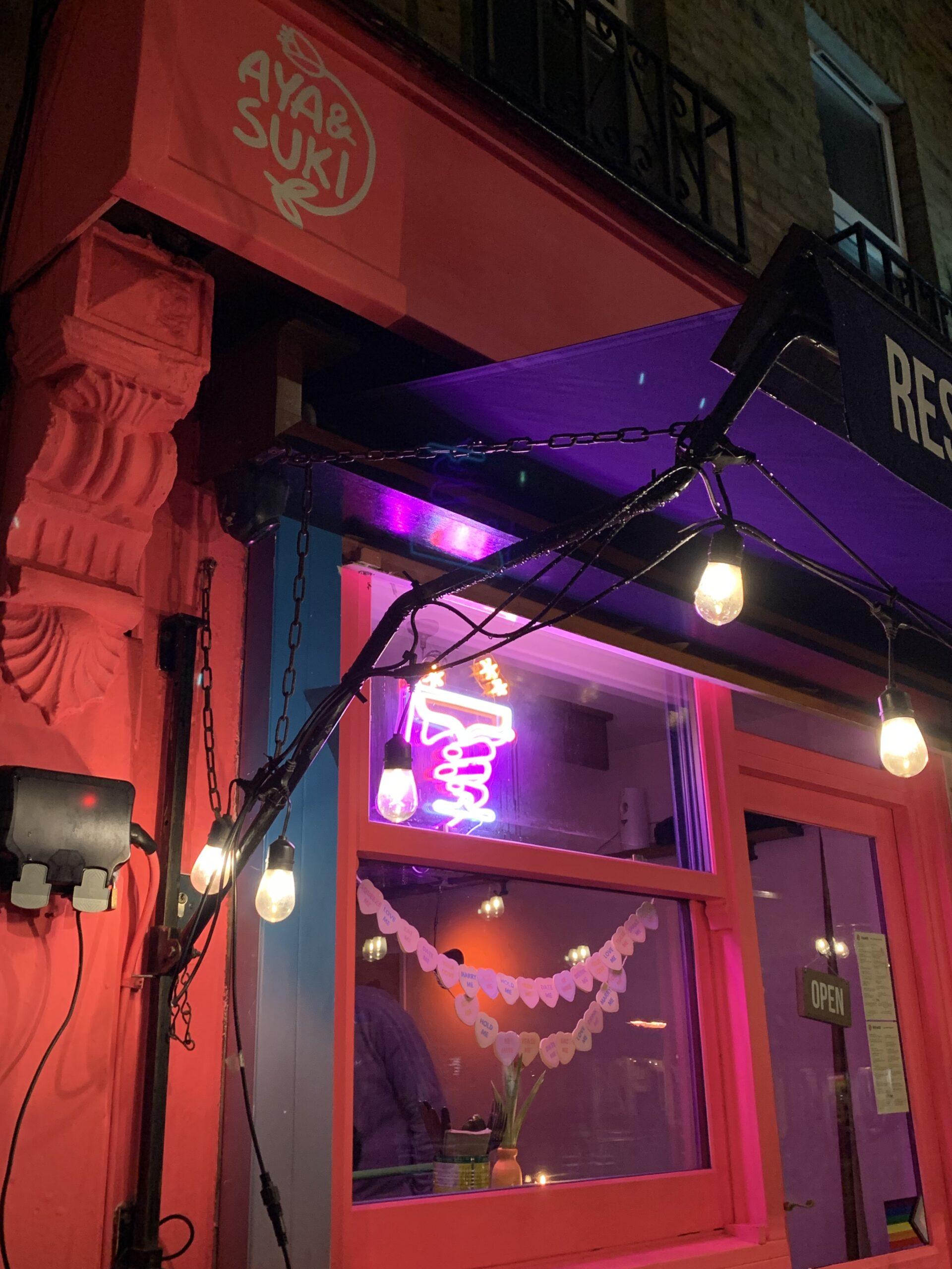 Bursting neon pink on Broadway Market, Aya & Suki is a relaxed neighbourhood restaurant with sharing brunch platters and a mezze dinner menu. As well as our own specialty cocktails, we serve Top Cuvée wine, Queer Brewing beer and We Are Here coffee. Our food is all vegan or vegetarian with a focus on colourful and exciting flavours. Come and say hi!